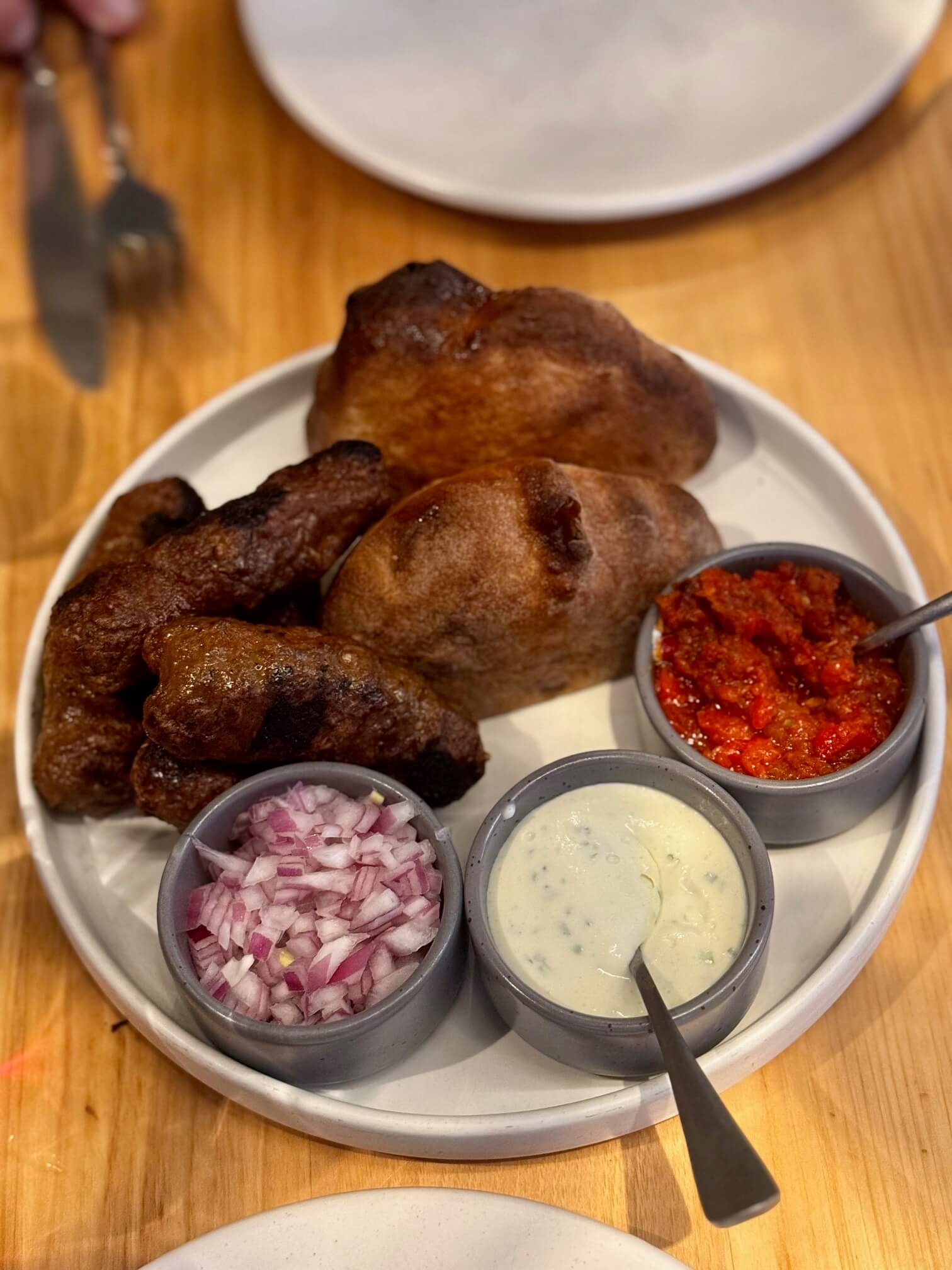 The Cevapcici, another traditional Balkan dish, arrived with excellent house-made ajvar and kaymak.