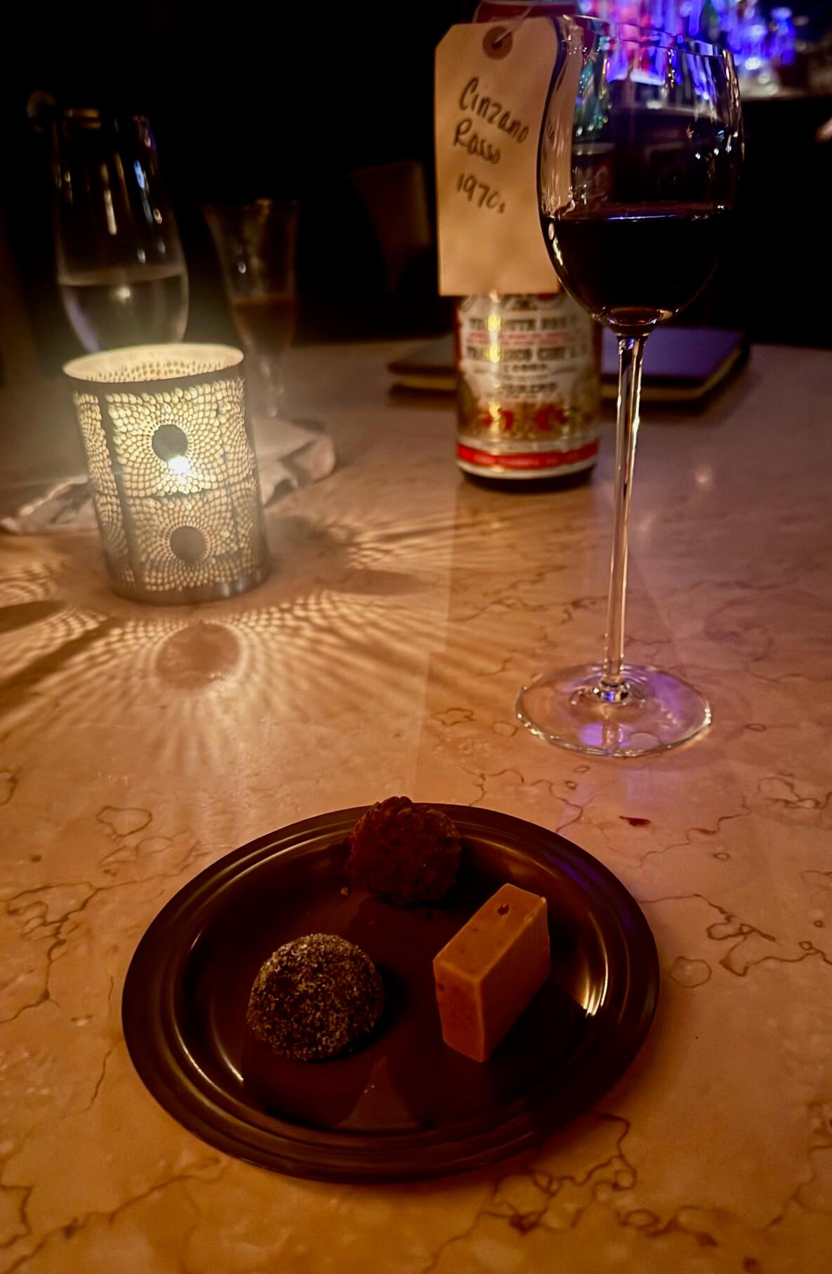 Finally, we finished with a vintage pour of Cinzano Rosso from the 1970s alongside a plate of petite mignardises — three delicate bites that ended the tasting beautifully.