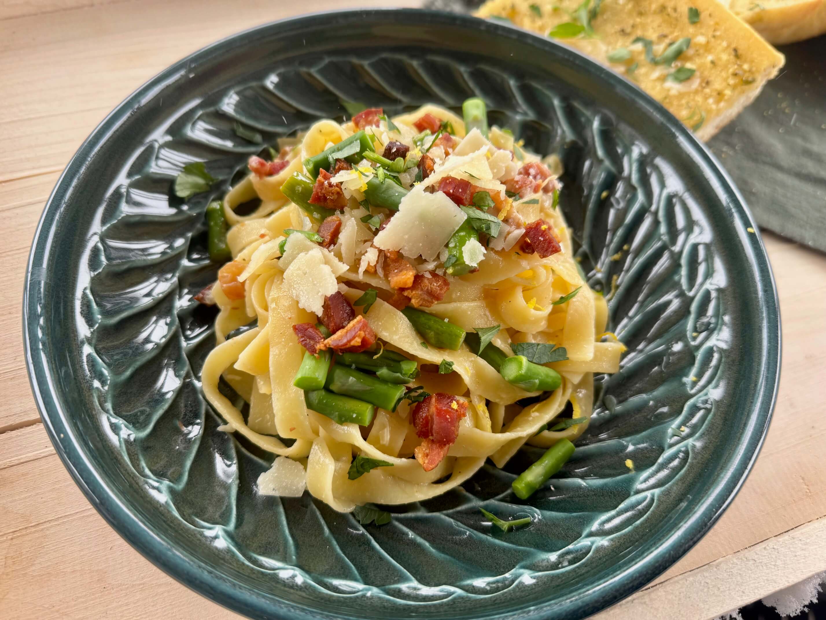 This farmhouse spring pasta is the perfect balance of bright seasonal flavor and savory richness. Tender asparagus, fresh lemon, and crispy pancetta come together in a simple sauce that feels elegant but is incredibly easy to make.