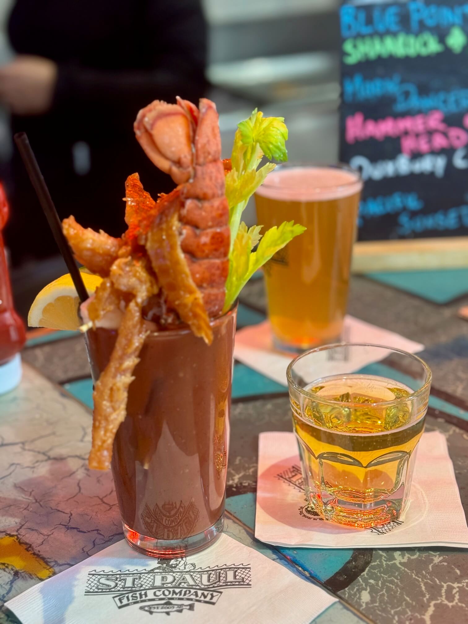 The house-made tomato juice base was perfection. Oh—and it came with a sidecar of local lager. Because… Wisconsin.