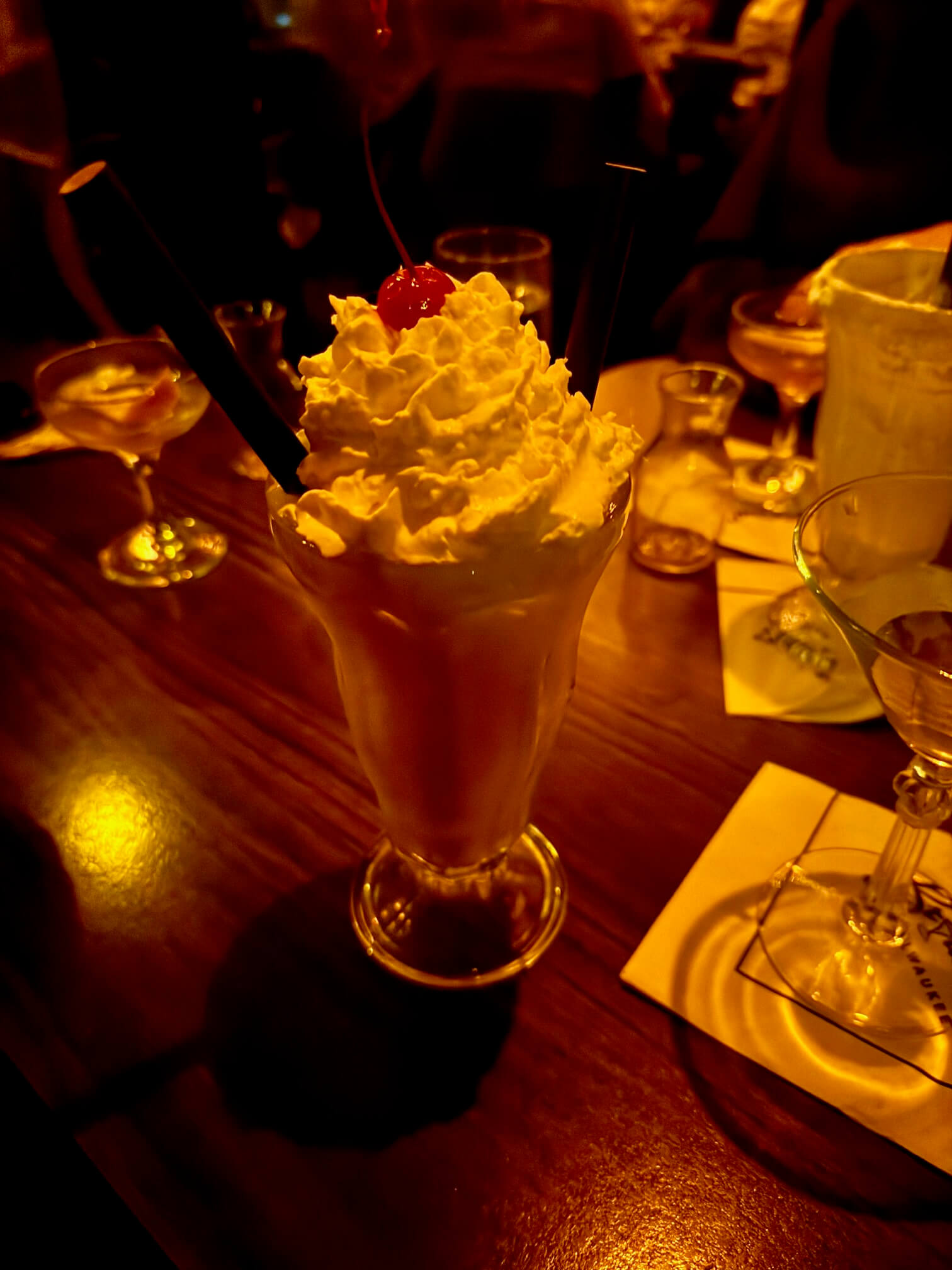 I went classic with a dirty vodka martini, then ended the night with a boozy cherry-almond milkshake topped with whipped cream. Over-the-top? Yes. Worth it? Also yes.