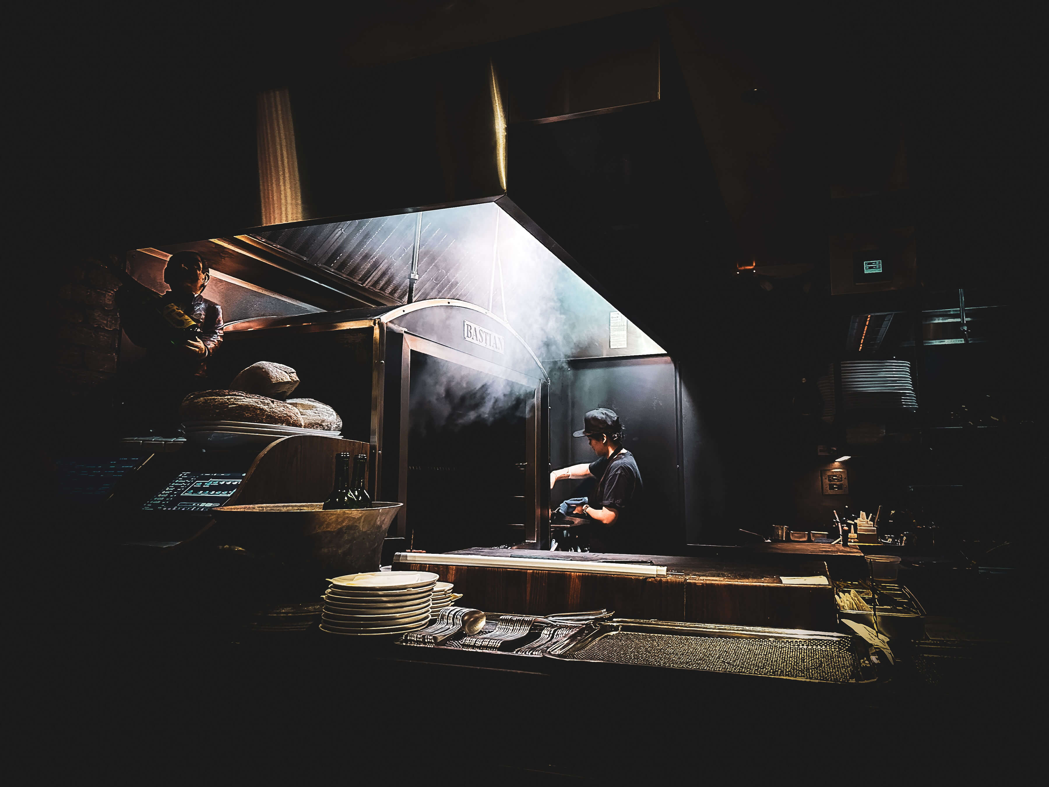 Positioned just steps from the kitchen, this vantage point offers a direct view of the Basque-inspired oven, where each cut of steak is handled with remarkable precision. Watching the chefs work feels less like dinner and more like a live performance.